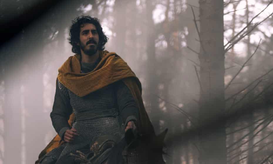 The most interesting part of the story is basically intact, as Sir Gawain (Dev Patel, who I think is working his way through being cast as every major leading English literary character) is celebrating Christmas at the Round Table, when, in this version, Gawain's mother (Sarita Choudhury), who is never named as Morgan Le Fay, but whatever, casts a spell that summons The Green Knight (Ralph Ineson) to the dinner, and challenges a knight to land a blow against him, and anyone who would, would get his axe, but would be condition to return in a year, to get a blow in return.